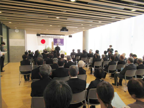 遺族会の仮家正弘会長が、「今日の平和で平穏な生活が享受出来ているのは、戦争の犠牲になられた多くの方々の尊い生命の上に築かれていることを決して忘れてはなりません。二度と戦争をしてはならない、我々のような遺族を決して出してはならない。このことを改めて認識し、世界の恒久平和実現に努力してゆかなければなりません。昨年より戦没者遺族以外の一般の人達と共に、特に児童生徒達の代表が、追悼式への参加があることの意義は大変大きく、英霊も喜んでいることと存じます。」と追悼の辞を述べました。